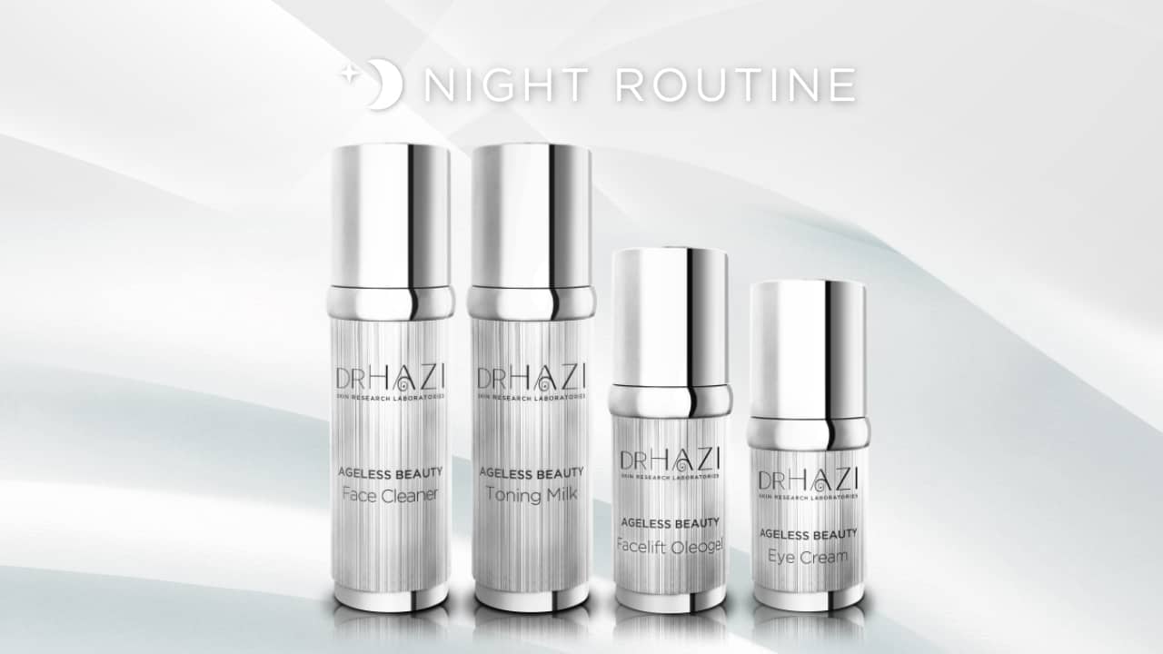 Gemäß dem DRHAZI-Ansatz hydratisieren und schützen wir die Gesichtshaut tagsüber, gefolgt von einer Stärkung der tieferen Hautschichten in der Nacht. Wir empfehlen die Anwendung von Oleogel über Nacht in Kombination mit Tonisierungsmilch ohne Auftragen von Creme-Emulgatoren, die die Dermisschicht der Haut intensiv stärken, um sicherzustellen, dass keine tief liegende Austrocknung des Hautgewebes auftritt.